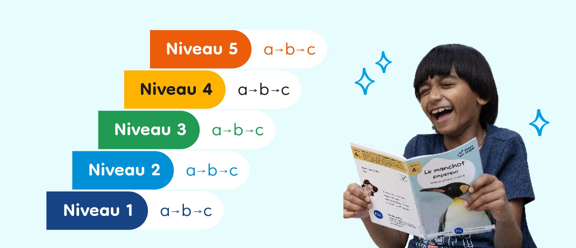 Une progression des apprentissages développée en consultation avec des chercheurs et des enseignants permet l’enseignement explicite et systématique des sons. L’enfant devrait être capable de lire par lui-même 100 % des mots des livres dans l’étape 1 et 99% des mots dans l’étape 2. On peut donc s’assurer que chaque enfant a les outils pour apprendre à son rythme.