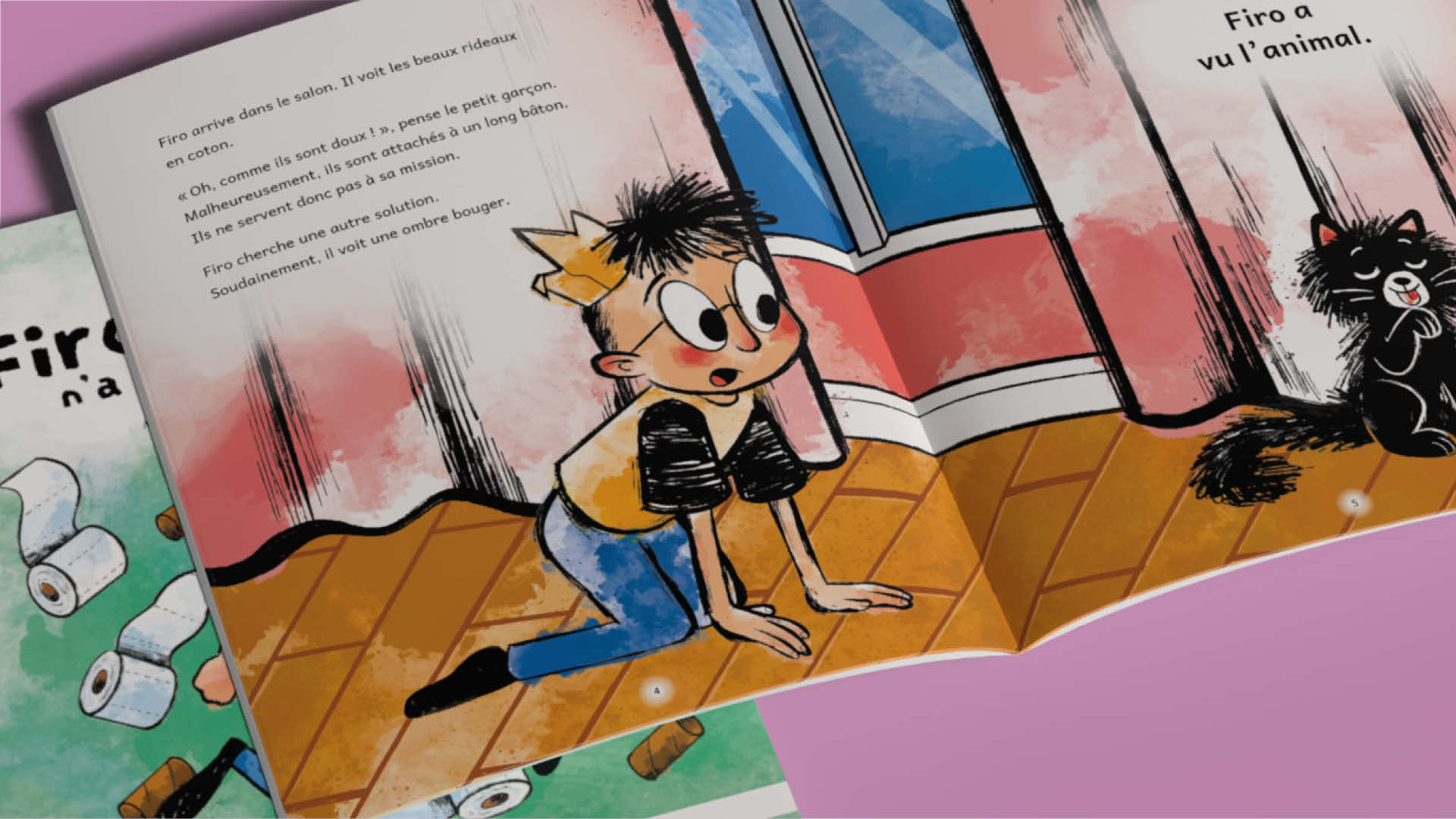 Firo Fouille a envie, mais il ne reste plus de papier de toilette. Il part à la recherche d’une solution à travers la maison.